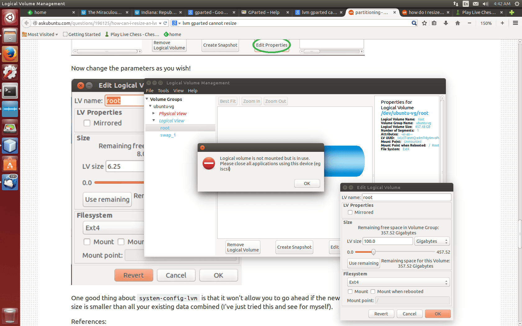 Как изменить размер раздела LVM с помощью system-config-lvm? В соответствии с этим спросите Ubuntu ответ