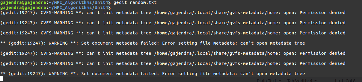 В последнее время я получаю эту ошибку всякий раз, когда я запускаю gedit, и сообщение об ошибке, кажется, заполняет мой буфер терминала.