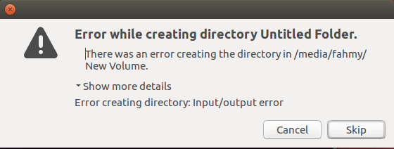 /media/fahmy/New VolumeОшибка создания каталога: ошибка ввода / вывода