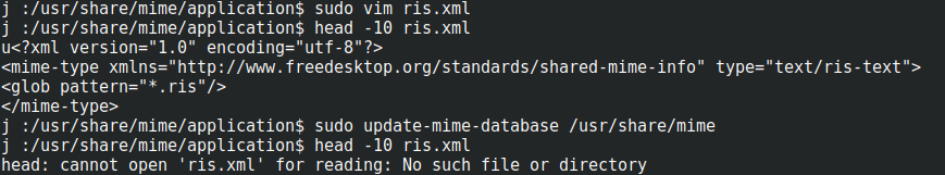 Поэтому я следовал инструкциям, чтобы сделать файл.xml в /usr/share/mime/applicaitons, После запуска sudo update-mime-database /usr/share/mime, этот XML-файл был удален.