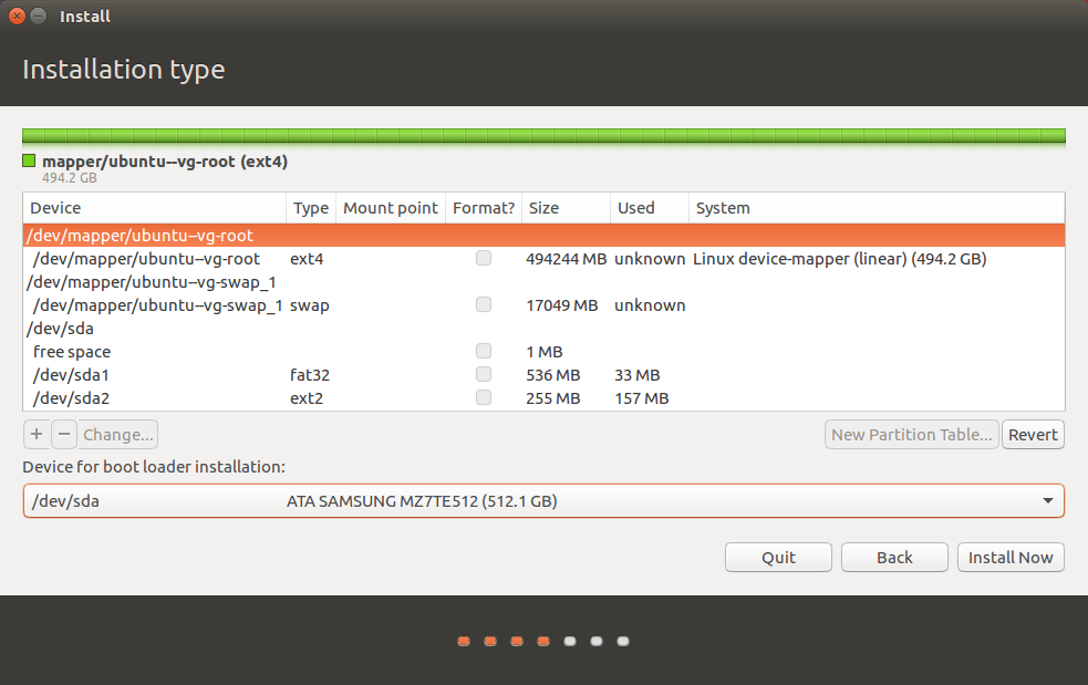Если бы мне нужно было выбрать вторую запись (/dev/mapper/ubuntu- vg-root) в качестве корня файловой системы для установки (что на данный момент является моим подозрением), я не уверен, что выбрать в качестве устройства для установки загрузчика: это будет / dev / sda или / dev / mapper / ubuntu - vg-root?