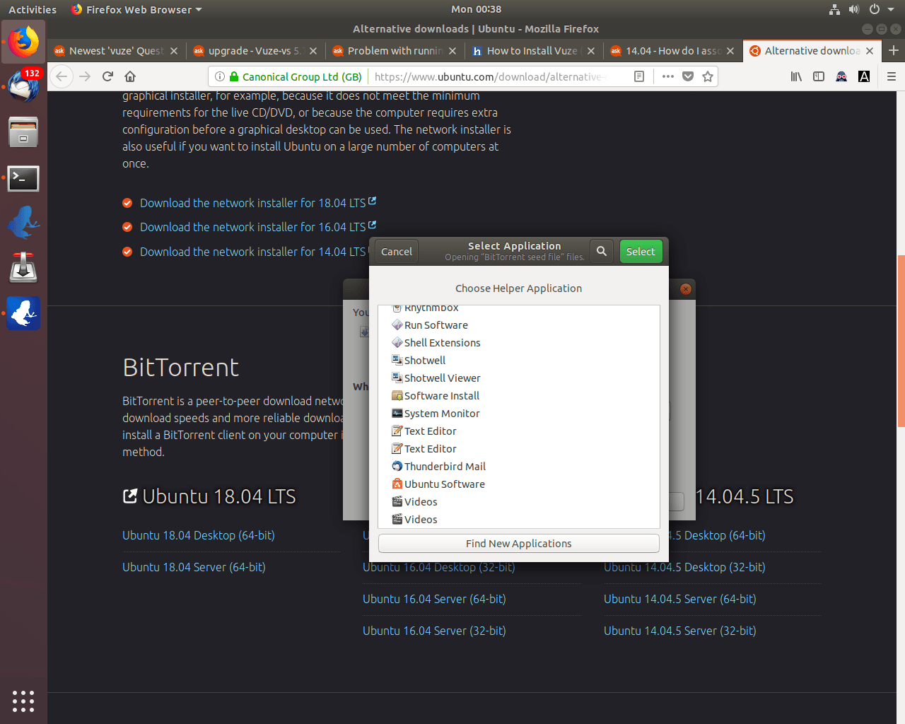 Как я могу гарантировать, что vuze указан в приложениях для Firefox, чтобы связать торрент-файлы с ним?