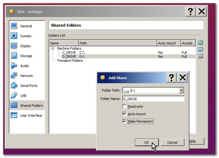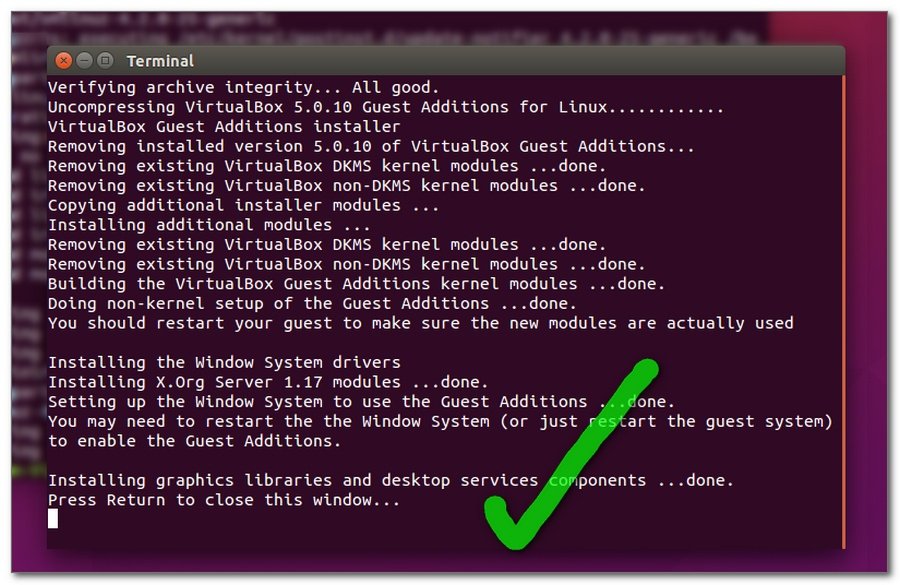 Кроме того, я бы порекомендовал (если вы этого еще не сделали) установить dkms, При обновлении более новых ядер Ubuntu модули ядра с гостевыми дополнениями будут автоматически скомпилированы. Без dkms вы потеряете поддержку общих папок при обновлении ядра.