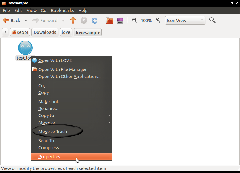 Linux Mint отображает опцию "удалить" в контекстном меню красным цветом значка.