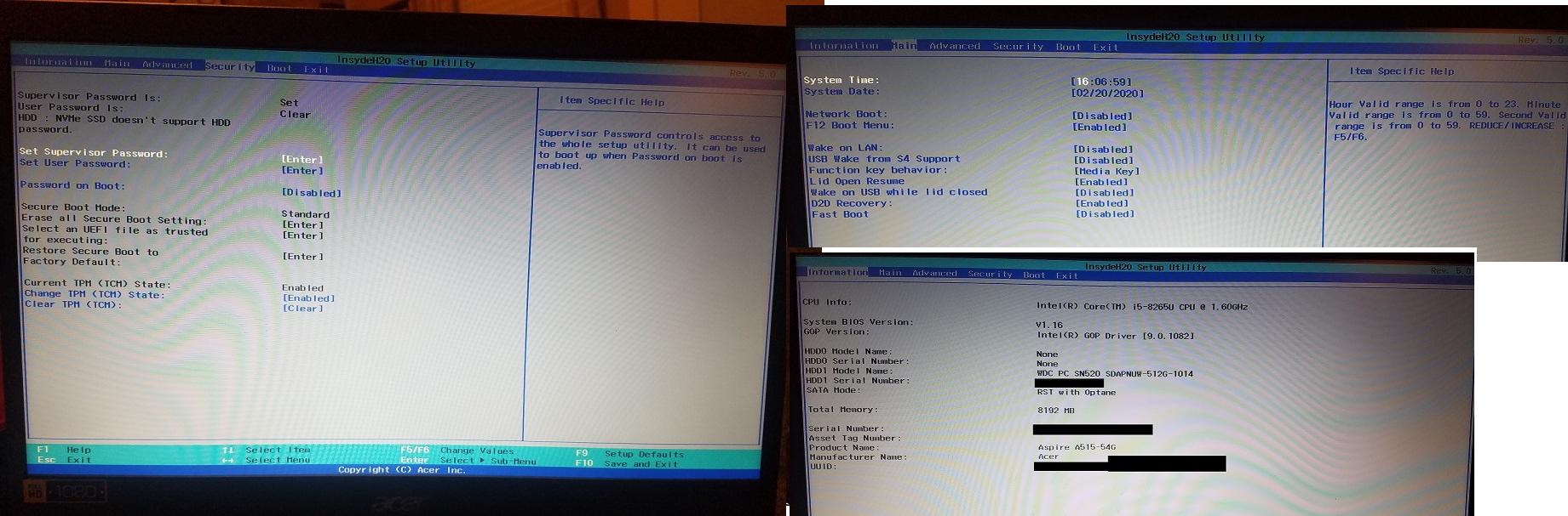 Моим первоначальным намерением было установить ubuntu вместе с Windows 10 (двойная загрузка) на недавно приобретенном Acer Aspire A515-54G, но live/install не может найти жесткий диск.