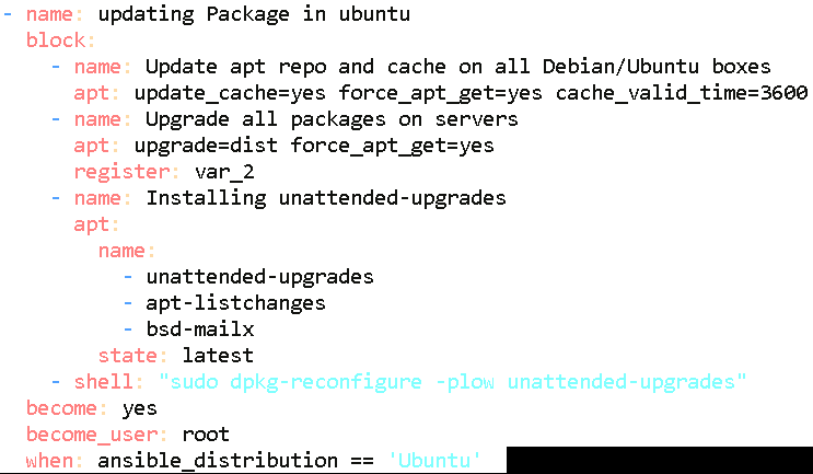 Код Playbook следующий:-ansible-код для обновления пакетов Ubuntu