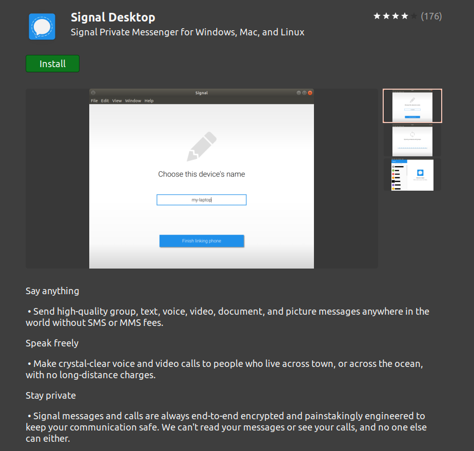 Теперь нажмите кнопку « Установить », доступную под рабочим столом Signal, чтобы начать установку.