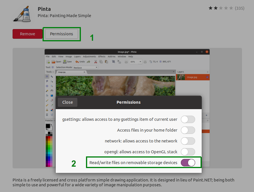 Затем установите разрешения в Ubuntu Software следующим образом: