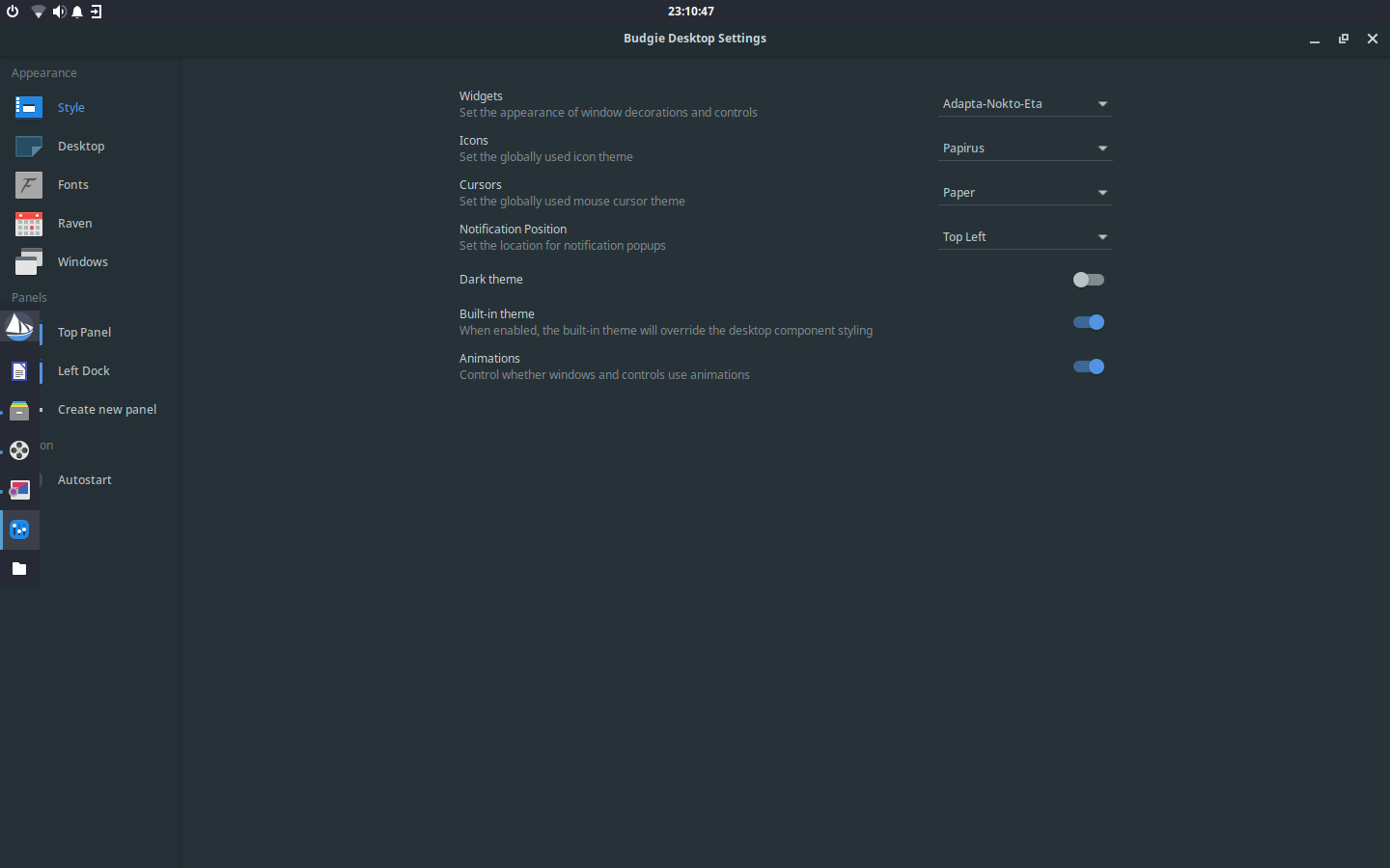 Budgie — панель, режим Dock; настройка, модификация