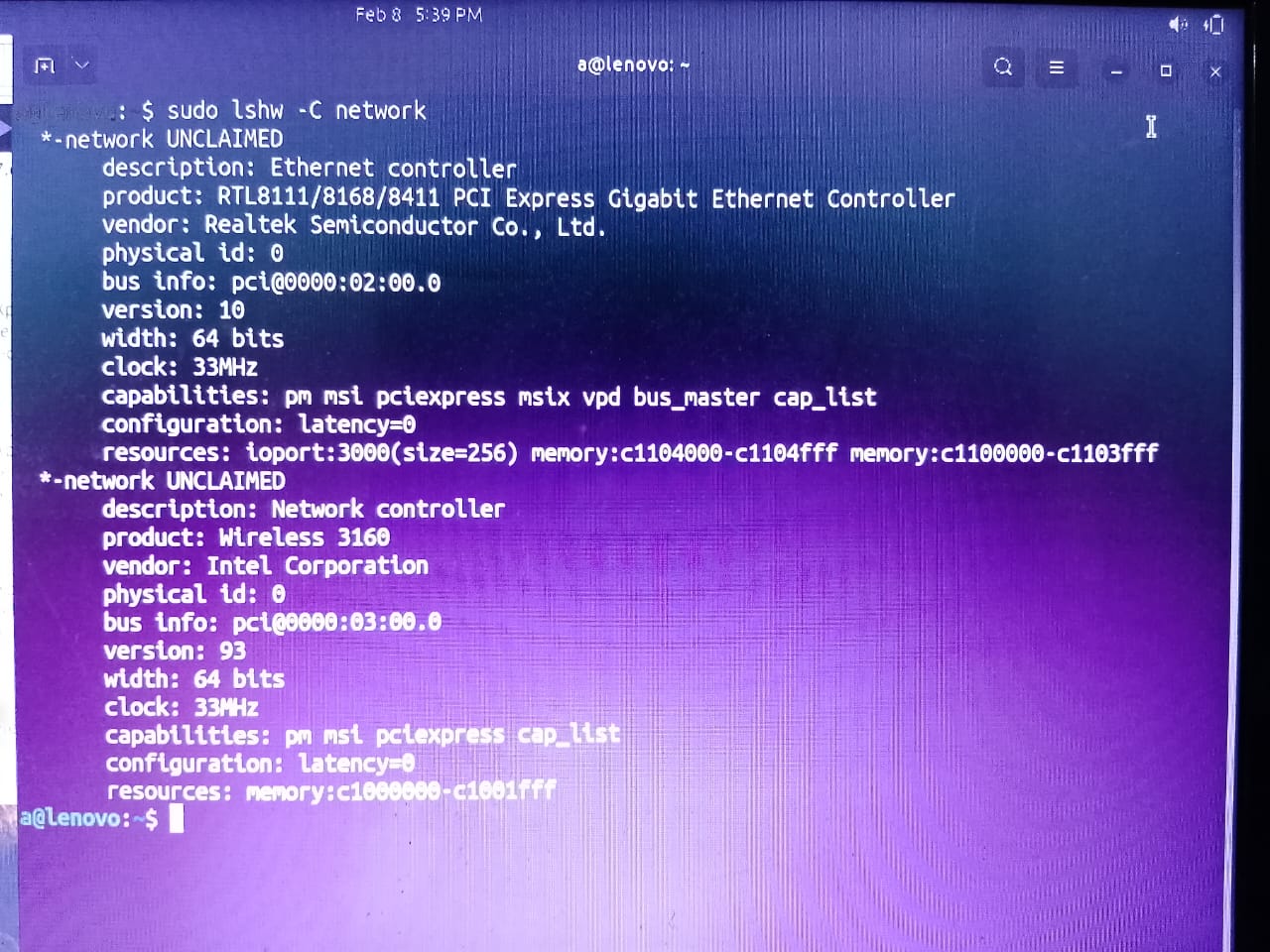 sudo lshw -C network: