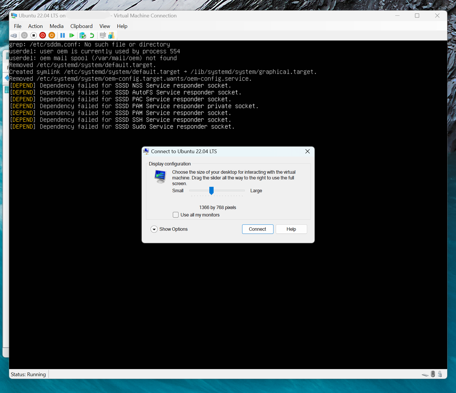 Ubuntu 22.04 через Hyper-V не загружается, сбой зависимости, связанный с сокетом ответчика SSSD