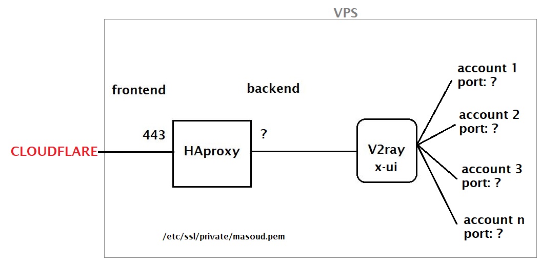 Я использую Ubuntu 22.04. У меня есть VPS с v2ray, который проксируется за Cloudflare. Из-за ограничения открытых портов Cloudflare я хочу использовать HAproxy для подключения всех пользователей через порт 443 на VPS. Как настроить HAproxy для реализации такого сценария? Есть ли что-то, что я должен сделать на v2ray и x-ui?
