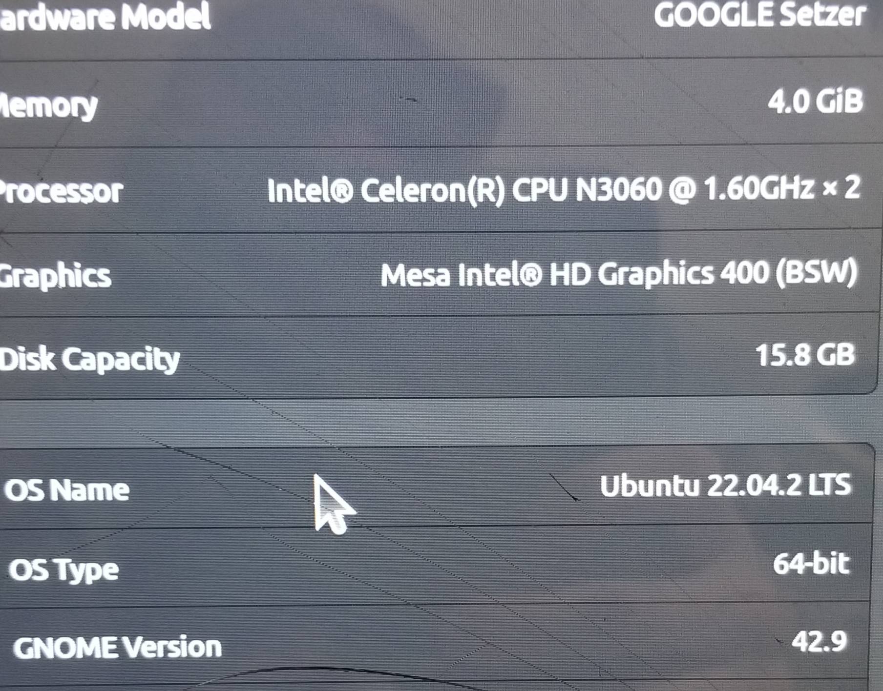 Я выполнил полную установку с использованием живого USB и прошивки mrchromebox. Я не настолько разбираюсь в технологиях и знаю, что здесь есть очень похожие вопросы, я прочитал ответы и все еще нуждаюсь в более конкретной помощи. Включены фотографии моего окна gparted и некоторые характеристики Chromebook, а также версия для Ubuntu.