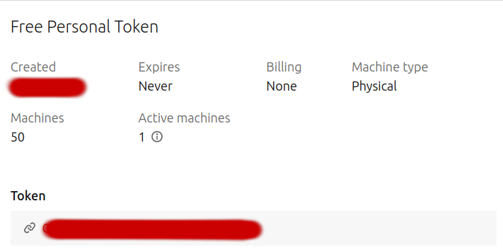 Примечание. Моя панель управления Ubuntu Pro по-прежнему сообщает мне, что к моей учетной записи подключено только 1 устройство (мой рабочий стол), используя другой токен, я не могу отследить, что мой сервер тоже связан. Подсчитайте 1 машину на https://ubuntu.com/pro/dashboard.
