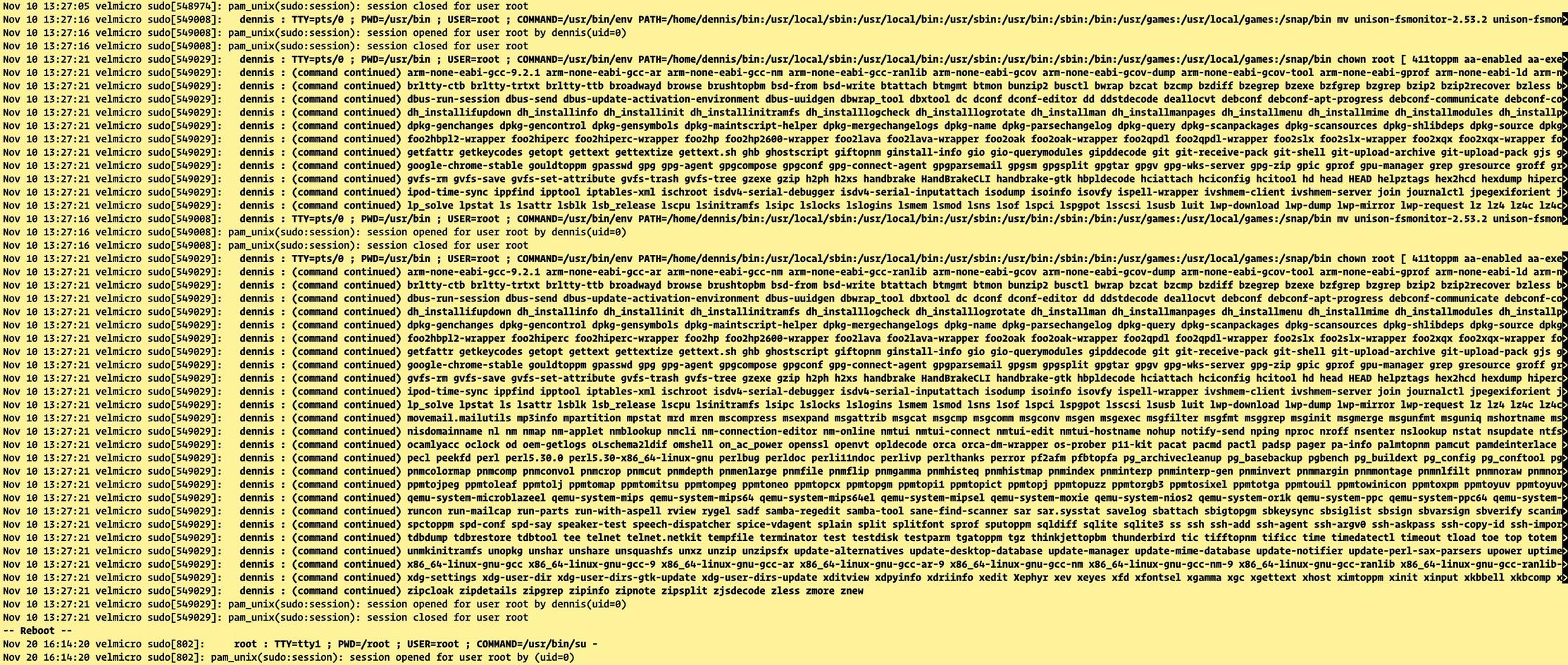 По предложению @waltinator я запустил sudo Journalctl /usr/bin/sudo. Я обнаружил, что эти два обновления произошли 10 ноября, и sudo больше не использовался до сегодняшней проблемы. Вот изображение, показывающее сокращенный журнал: