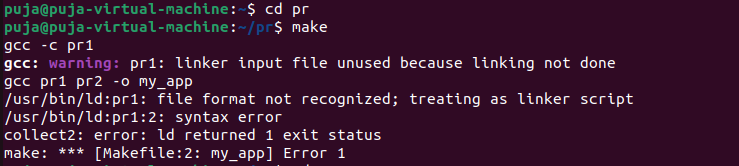 /usr/bin/ld:pr1:2: syntax error
